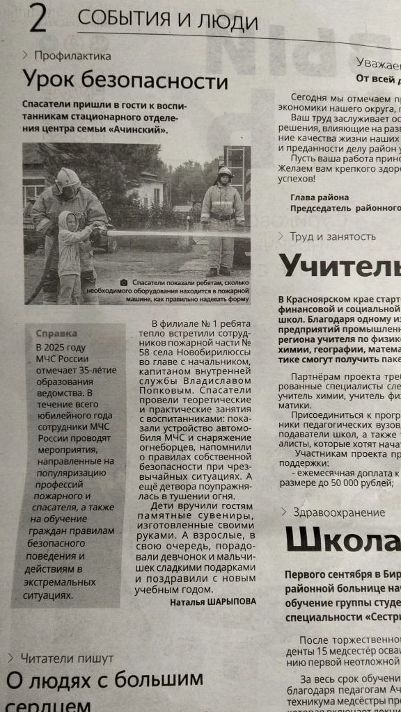 тема: "Урок безопасности" , № 63 от 03.09.2025 г., стр. 2.