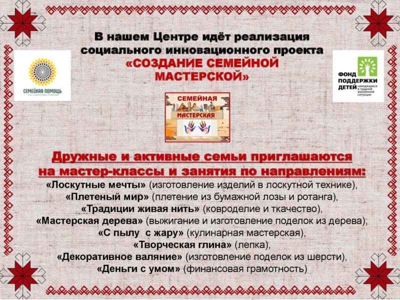 Представленные на нашем сайте материалы позволят вам ближе познакомиться с деятельностью Центра по предоставлению различных социальных услуг семьям с детьми.
